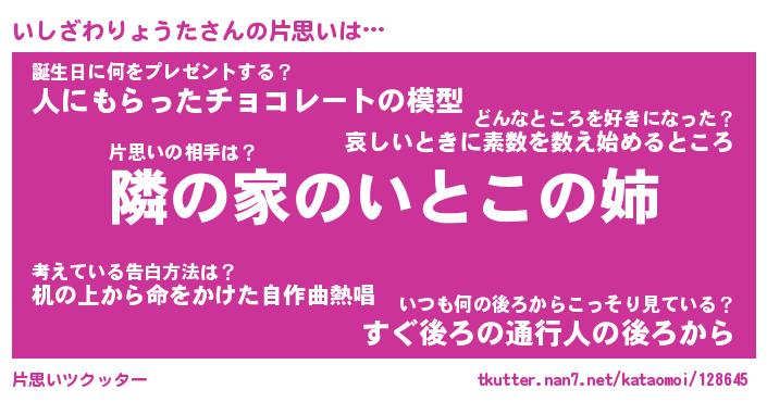 | 男性向けラノベタイトル風あだ名 | 『いしざわりょうたの憂鬱』 |