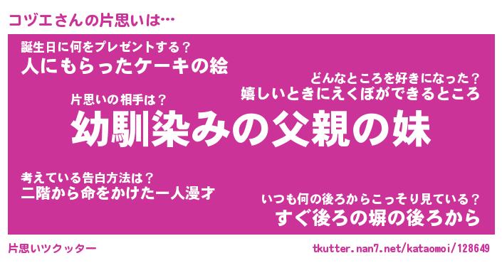 | ヘコむあだ名 | 『コヅふぇ~』『酢こんぶ』 |