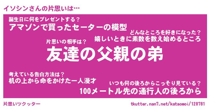 | 意味不明あだ名 | 『ペロリンイソシン』『永久保存イソシン』 |