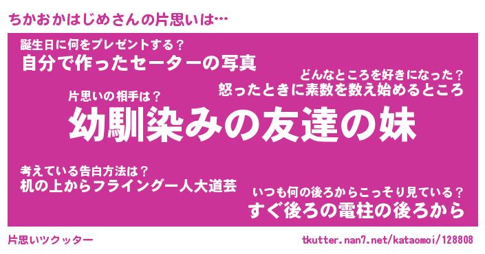 | ヘコむあだ名 | 『ちかっふぃ~』『牛乳』『ちかお』 |