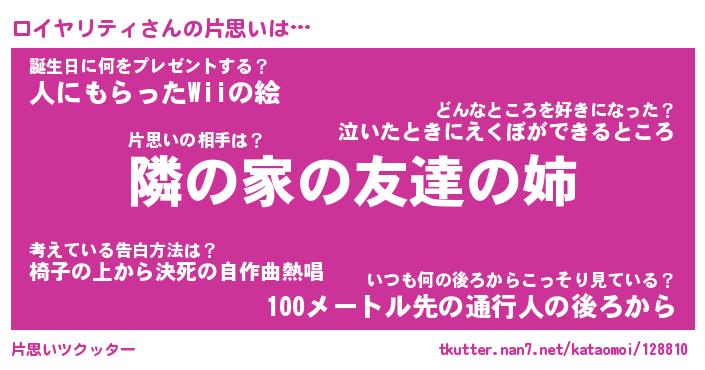 | 男性向けラノベタイトル風あだ名 | 『ロイヤリティの憂鬱』 |