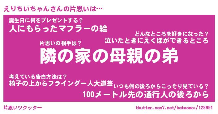 | 意味不明あだ名 | 『ペロリンえりちいちゃん』 |