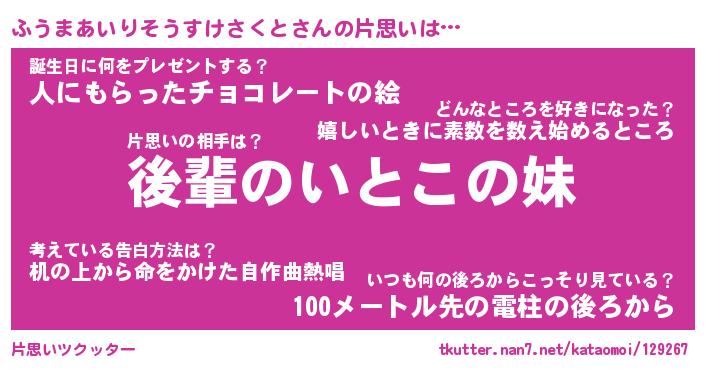 | 胡散臭い通販商品みたいなあだ名 | 『モテモテ間違いなし水晶球…その名も「ふうまあいりそうすけさくと」』 |