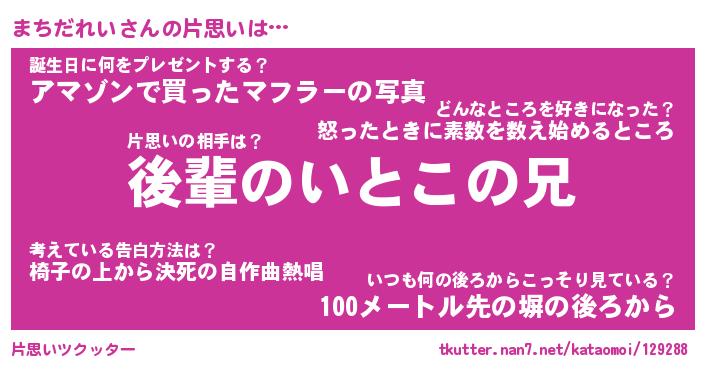 | ヘコむあだ名 | 『まちもー』『酢こんぶ』『まちっ子』 |