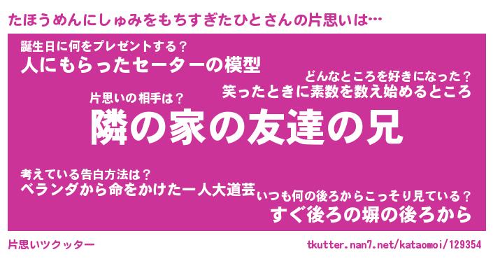 | 胡散臭い通販商品みたいなあだ名 | 『必ず成功する霊験あらたかなお札…その名も「たほうめんにしゅみをもちすぎたひと」』 |