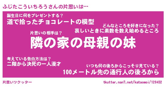 | 胡散臭い通販商品みたいなあだ名 | 『必ず成功するブレスレット…その名も「ふじたこういちろう」』 |