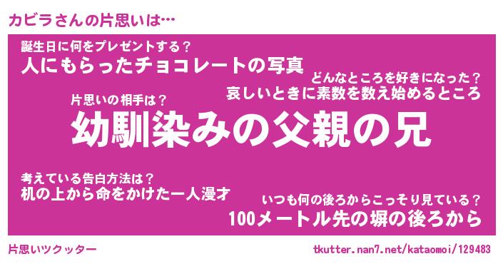 | 男性向けラノベタイトル風あだ名 | 『カビラの憂鬱』 |
