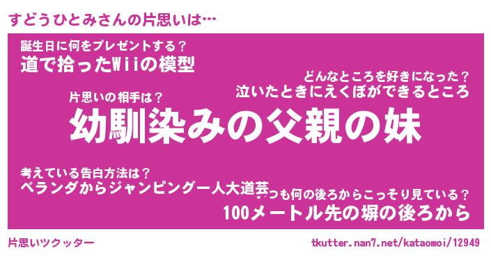 | 男性向けラノベタイトル風あだ名 | 『すどうひとみの憂鬱』 |