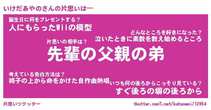 | ツイッター | いけだあやのさんのツイッターID『masyumaro_idle』 |