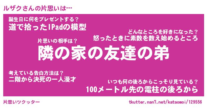 | ヘコむあだ名 | 『ルザっふぃ~』『つくし』 |