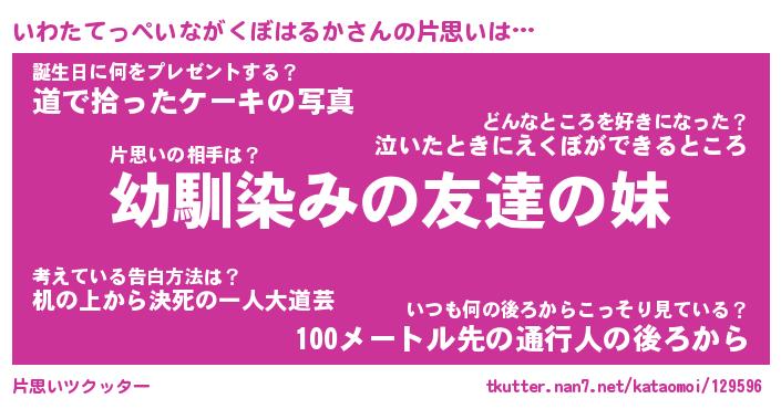 | 男性向けラノベタイトル風あだ名 | 『いわたてっぺいながくぼはるかの憂鬱』 |