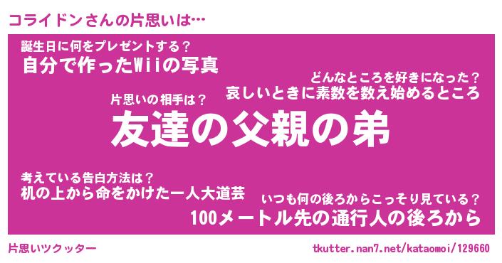 | ヘコむあだ名 | 『コラふぇ~』『つくし』 |