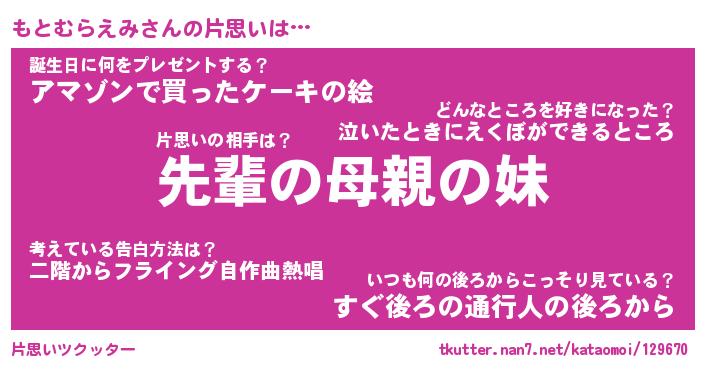 | 胡散臭い通販商品みたいなあだ名 | 『モテモテ間違いなしブレスレット…その名も「もとむらえみ」』 |