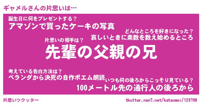 | 意味不明あだ名 | 『ペロリンギャメル』『永久保存ギャメル』 |