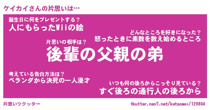 | ポケモン風あだ名 | 『ケイチュウ』『ケイカダネ』 |