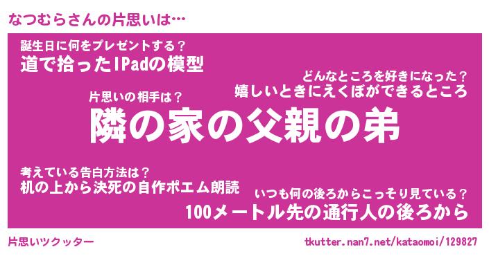 | ポケモン風あだ名 | 『ナツチュウ』『ナツムダネ』 |