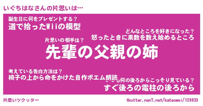 | ヘコむあだ名 | 『いぐふぇ~』『豆乳』『いぐ太郎』 |