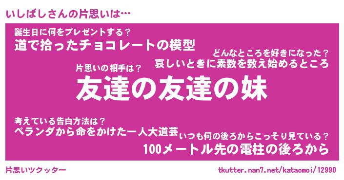 | ヘコむあだ名 | 『いしっふぃ~』『豆乳』 |