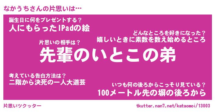 | 男性向けラノベタイトル風あだ名 | 『なかうちの憂鬱』 |