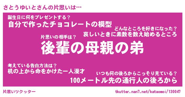 | 胡散臭い通販商品みたいなあだ名 | 『億万長者になれるブレスレット…その名も「さとうゆいと」』 |