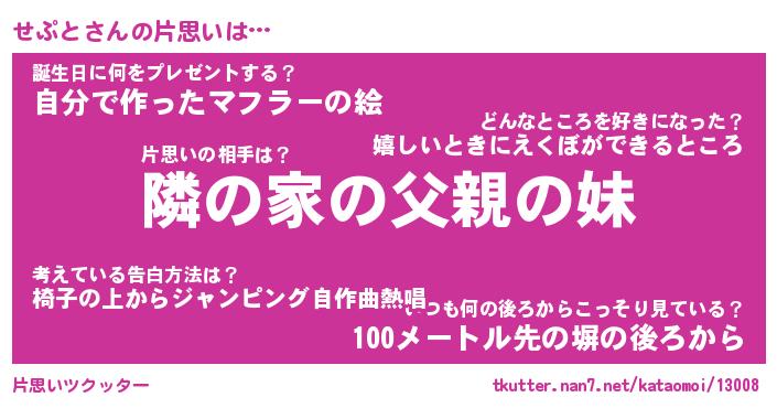 | ヘコむあだ名 | 『せぷふぇ~』『つくし』『せぷ太郎』 |