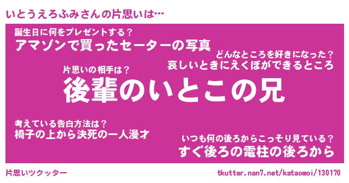 | 胡散臭い通販商品みたいなあだ名 | 『億万長者になれる水晶球…その名も「いとうえろふみ」』 |