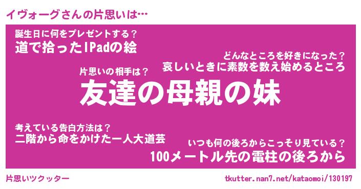 | ポケモン風あだ名 | 『イヴチュウ』『イヴォダネ』 |