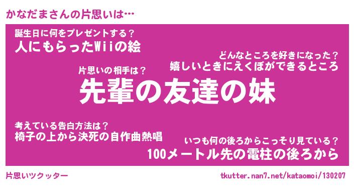 | 自動車の名前っぽいあだ名 | 『カナティマ』『カスラー』『カンR』 |