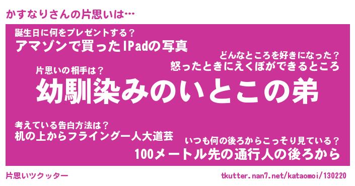 | 男性向けラノベタイトル風あだ名 | 『かすなりの憂鬱』 |