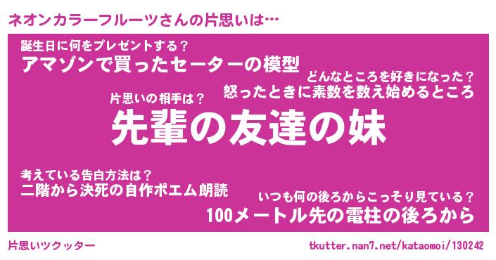 | 胡散臭い通販商品みたいなあだ名 | 『モテモテ間違いなし霊験あらたかなお札…その名も「ネオンカラーフルーツ」』 |