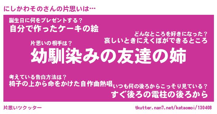 | 胡散臭い通販商品みたいなあだ名 | 『必ず成功する霊験あらたかなお札…その名も「にしかわその」』 |