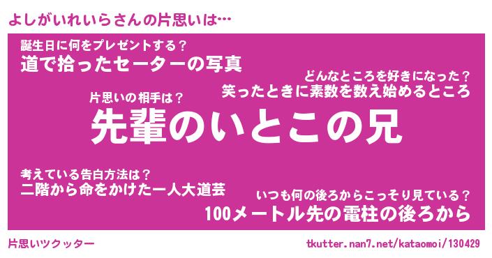 | ピコ太郎風あだ名 | 『ヨコ史郎』『ピヨ二郎』『ヨシ四郎』 |