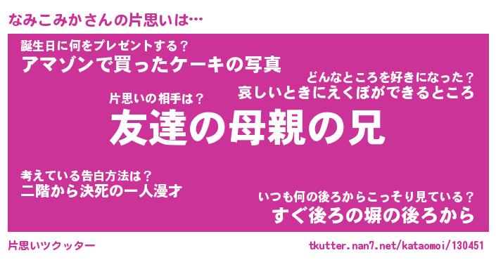 | 胡散臭い通販商品みたいなあだ名 | 『億万長者になれるブレスレット…その名も「なみこみか」』 |