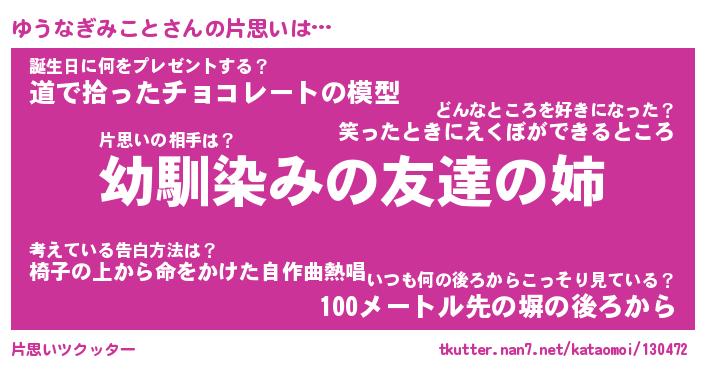 | 女子向けラノベタイトル風あだ名 | 『(仮)ゆうなぎみことのやんごとなき事情』 |