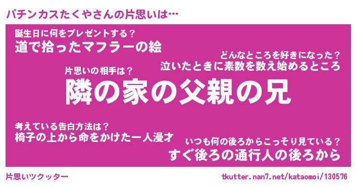 | 男性向けラノベタイトル風あだ名 | 『パチンカスたくやの憂鬱』 |