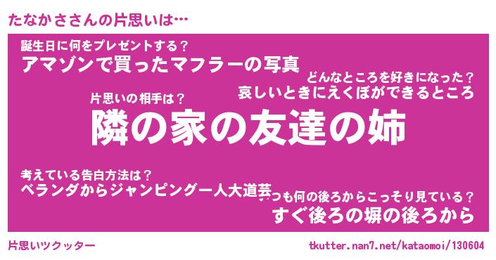 | 男性向けラノベタイトル風あだ名 | 『たなかさの憂鬱』 |