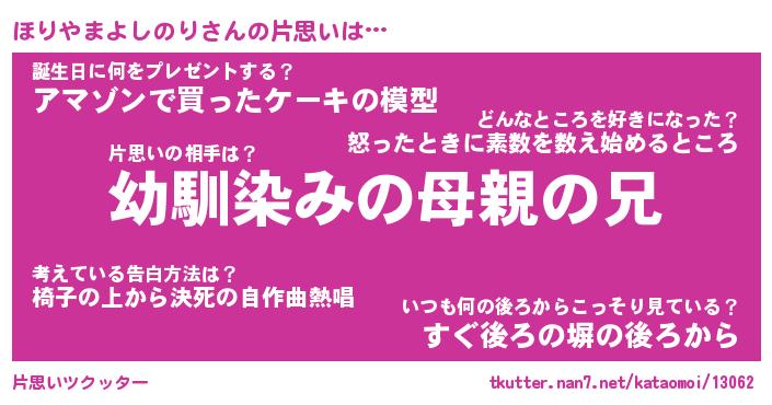 | ヘコむあだ名 | 『ほりにー』『豆乳』『ほり太郎』 |