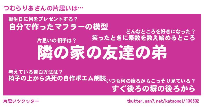 | ヘコむあだ名 | 『つむっふぃ~』『つくし』 |