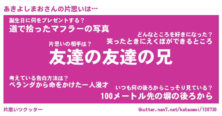 | 肩書あだ名 | 『あきよしまお御曹司』 |