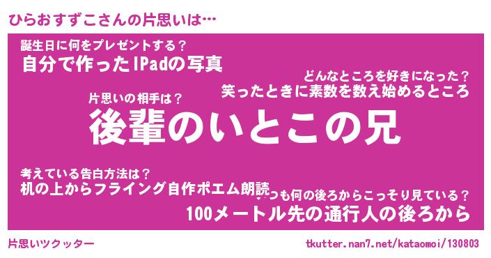 | ヘコむあだ名 | 『ひらにゅー』『つくし』『ひらお』 |