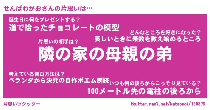 | 胡散臭い通販商品みたいなあだ名 | 『必ず成功するブレスレット…その名も「せんばわかお」』 |
