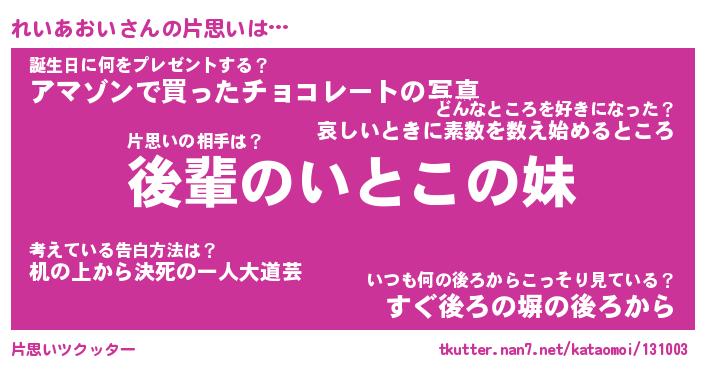 | ヘコむあだ名 | 『れいもー』『なまこ酢』『れいっ子』 |
