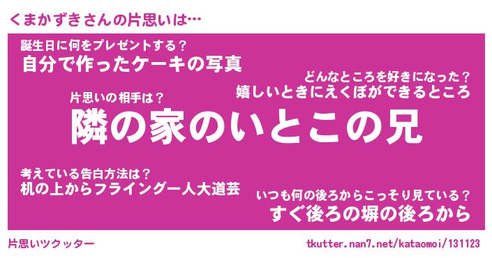 | ヘコむあだ名 | 『くまもー』『つくし』『くまお』 |