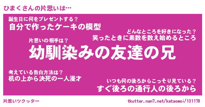 | ヘコむあだ名 | 『ひまっふぃ~』『つくし』 |