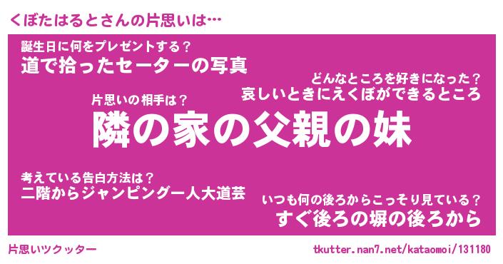 | 2回繰り返すあだ名 | 『くぼくぼ』『くくぼぼ』『ぬぷぬぷ』 |