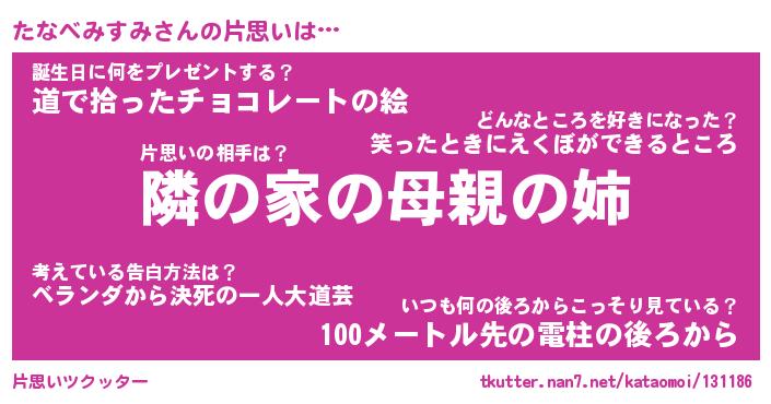 | 意味不明あだ名 | 『ペロリンたなべみすみ』 |