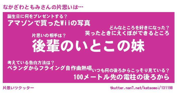 | 伝説のあだ名 | 『封印されしスナイパーなかざわともみ』 |