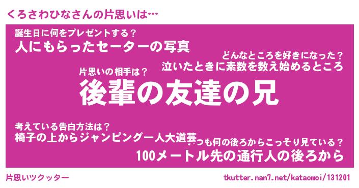 | ヒーロー風カッコイイあだ名 | 『スーパークロサワヒナ』『暗黒騎士クロ』 |