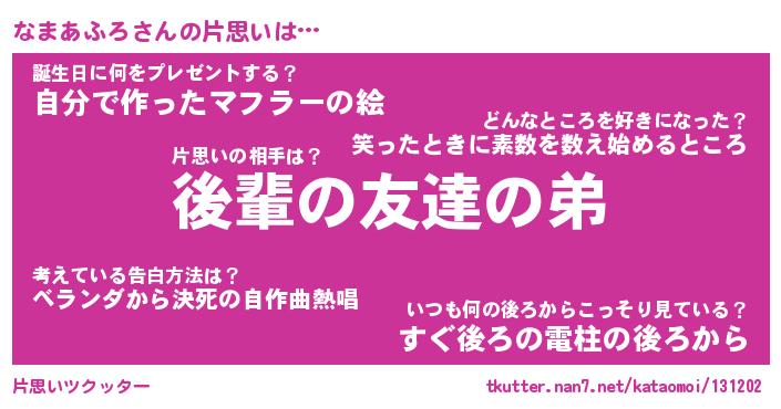 | 2回繰り返すあだ名 | 『なまなま』『ななまま』『ぶつぶつ』 |