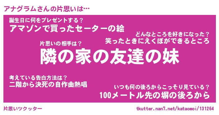 | 男性向けラノベタイトル風あだ名 | 『アナグラムの憂鬱』 |